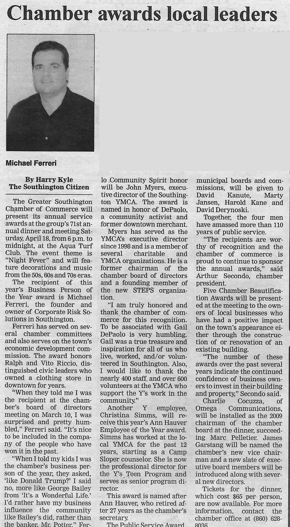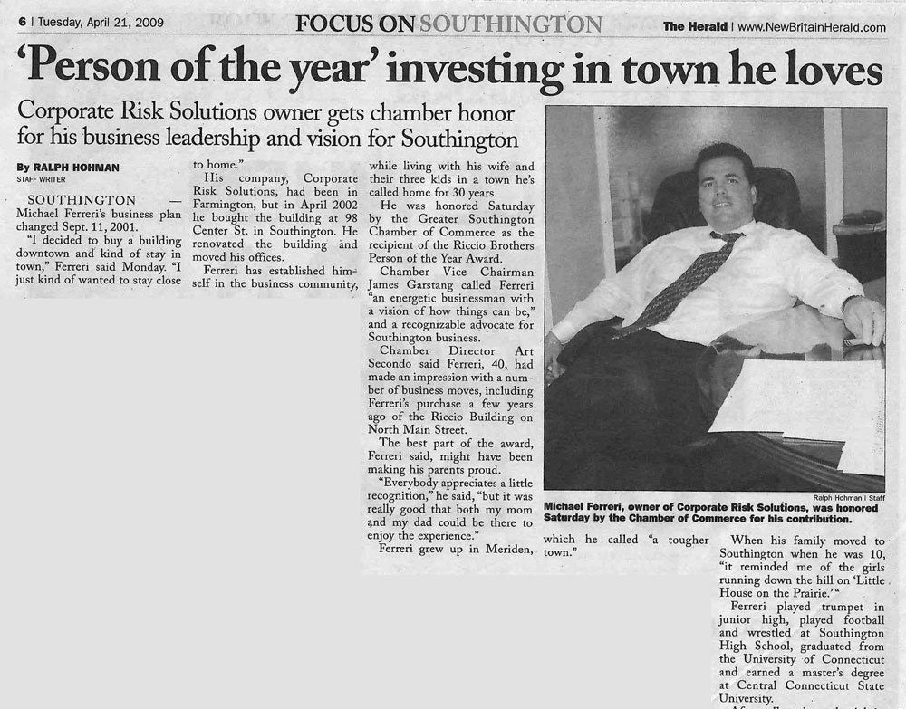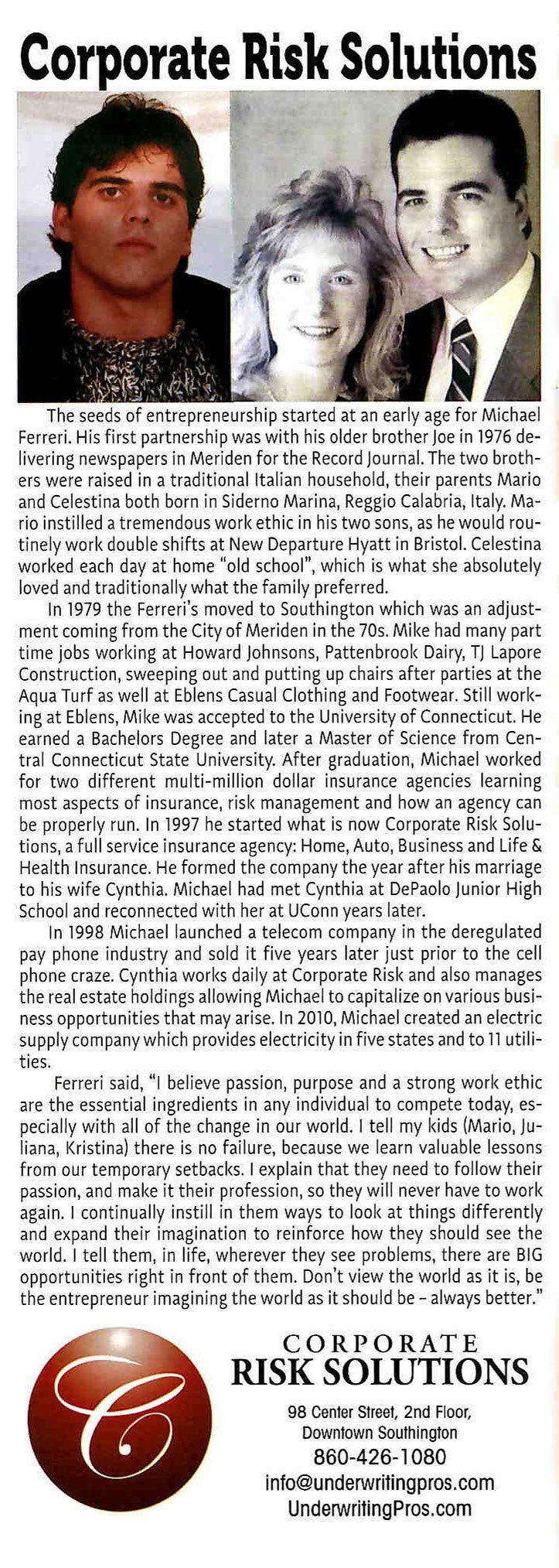 Corparate Risk Solutions is a trusted business in the greater Hartford, CT area. Throughout our journey, we have been featured in the community for our good will and social responsibility. Take a look below at our community involvement: